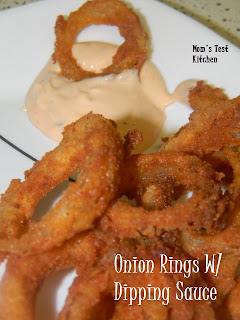 6. Fry the onion rings in the hot oil a few at a time until golden brown.
